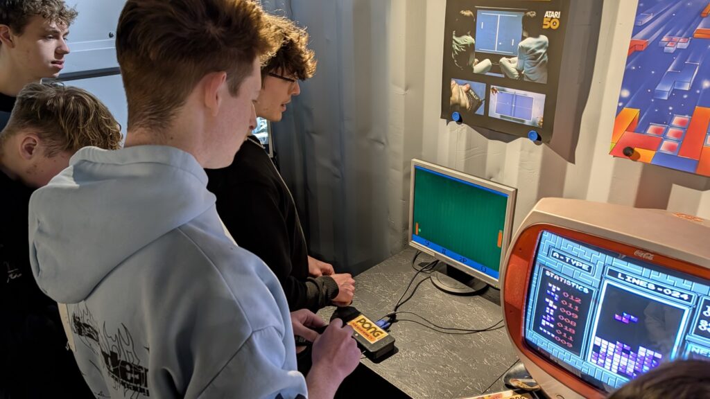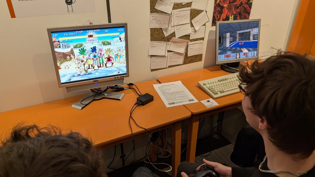 Une fois la partie culturelle terminée, les élèves ont eu accès aux anciennes machines et consoles. Manettes en main, ils se sont donnés à cœur joie sur les jeux vidéo des années 80 à 2000. On les avait emmenés découvrir l’histoire de l’informatique… on ne s’attendait pas à ce qu’ils la rejouent avec autant d’enthousiasme.